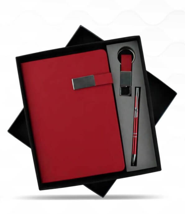 Gifts Set Diary A-5,Metal Pen,Key chain Combo Set Red Corporate Gifts.